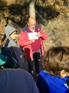 Antonio nos ha explicado que la geología de nuestro pueblo se remonta al período Ordovícico (hace aproximadamente 450 millones de años). En ese momento, las rocas que hoy vemos se originaron como sedimentos en un mar profundo y frío cerca del Polo Sur. Imaginar Alpartir bajo el agua y tan lejos de su ubicación actual ha sido fascinante.