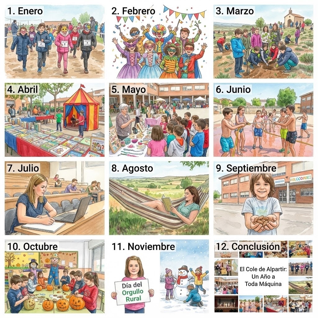Esta entrada no es un simple calendario de eventos, es un relato cronológico pensado para visibilizar el año 2025 en nuestra comunidad educativa. Nuestro colegio, la Comunidad Educativa de Alpartir, se caracteriza por un dinamismo constante, donde la vida académica se entrelaza de manera natural con las celebraciones, las tradiciones locales y un fuerte compromiso con los valores sociales.